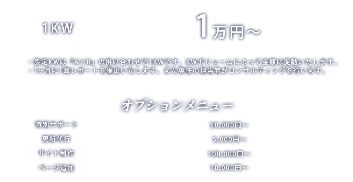 外部リンクに頼らず、コンテンツの追加や更新作業を中心に流入数を増加させます。また、毎月の改善レポートと指示書を作成し提出いたします。 回数無制限のお問い合わせは勿論、丁寧なコンサルティングまで、ご予算に応じて対応させていただききます。